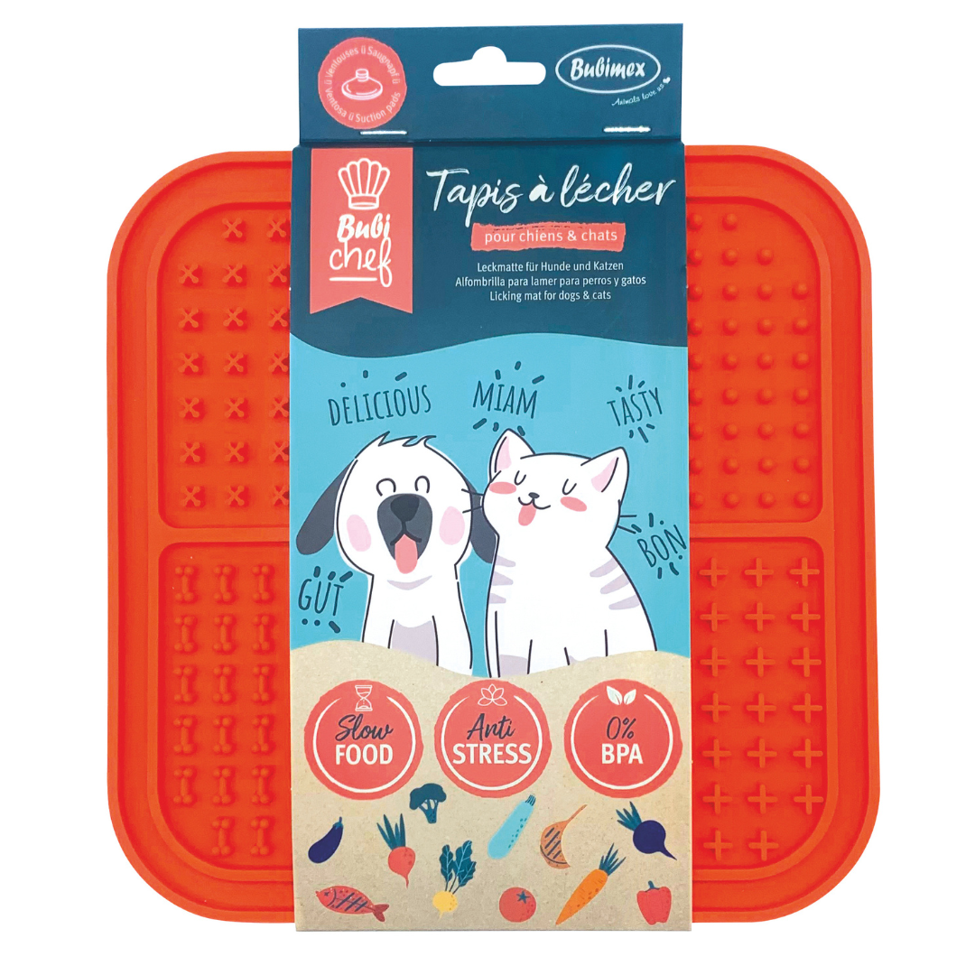 Mehr Entspannung in stressigen Situationen. Die Bubimex Schleckmatte Lickfour in Orange hilft deinem Hund, zur Ruhe zu kommen. Durch das Schlecken können Glückshormone freigesetzt werden, die entspannend wirken, ideal beim Tierarzt, bei Gewitter, auf Reisen oder nach aufregenden Erlebnissen.