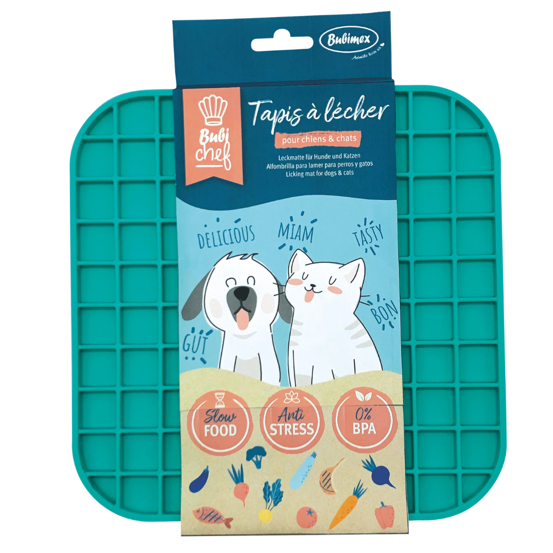Die Bubimex Schleckmatte Lickone in Türkis bietet deinem Hund eine sinnvolle und beruhigende Beschäftigung. Durch das Schlecken werden Glückshormone freigesetzt, die zur Entspannung beitragen können – ideal bei Stresssituationen wie Tierarztbesuchen, Gewitter oder nach aktiven Spaziergängen.
